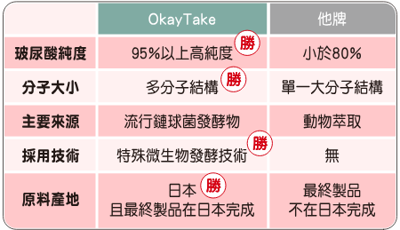 ∗2日本丘比食品企業,為日本百年歷史的國際大型跨國公司,其高分子玻尿酸又稱為Hyabest流行鏈球 菌發酵物(含透明質酸鈉)。
